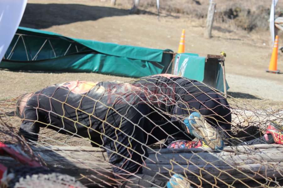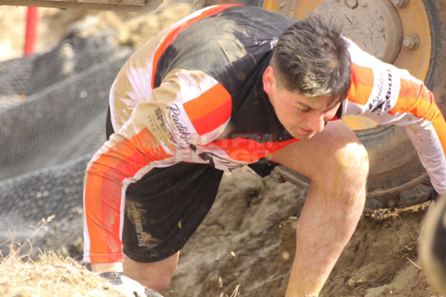 Luego de hacer el reconocimiento del circuito con los doce obstáculos, comenzó la competencia pasadas las 12:20 hs. con intervalos de tres minutos entre pareja y pareja, Un circuito que apenas comenzaba, a los 10 metros ya te tenías que internar en una zanja con agua y barro para después uno de los integrantes agarrar un tronco y llevarlo a la rastra otros veinte metros en subida y luego devolverlo al punto donde lo agarraba.