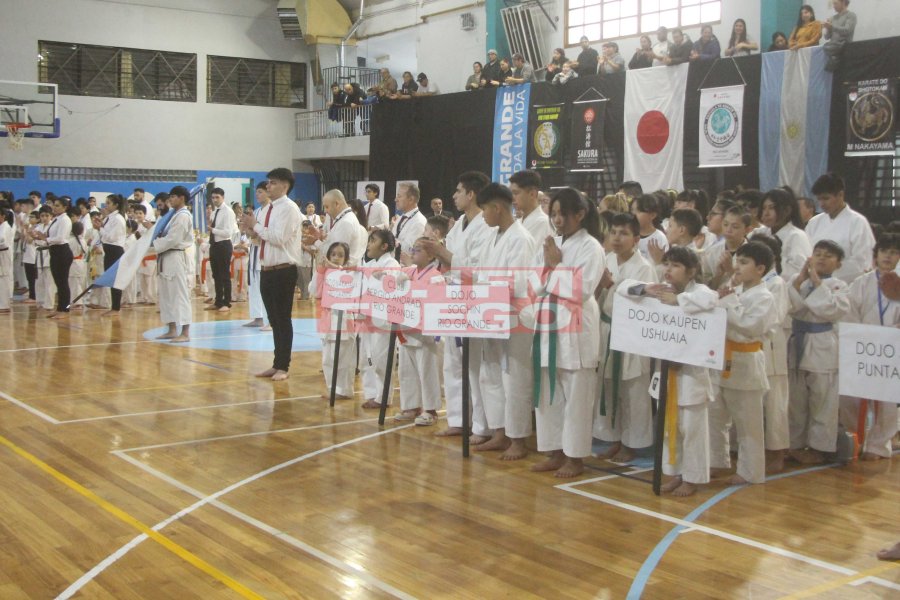 La jornada comenzó bien temprano con los mas chicos compitiendo sobre la cancha del Polideportivo y con muchas familias acompañando en las tribunas, para que a las 11 hs. se comience con el acto inaugural donde entraron todos los Dojos presentes y con la bandera de ceremonias encabezando las filas y luego de que el gerente Ejecutivo de la Agencia Municipal de Deportes, Cultura y Juventud, Sebastián Bendaña se dirigiera a los presentes, se dio por inaugurado el evento.