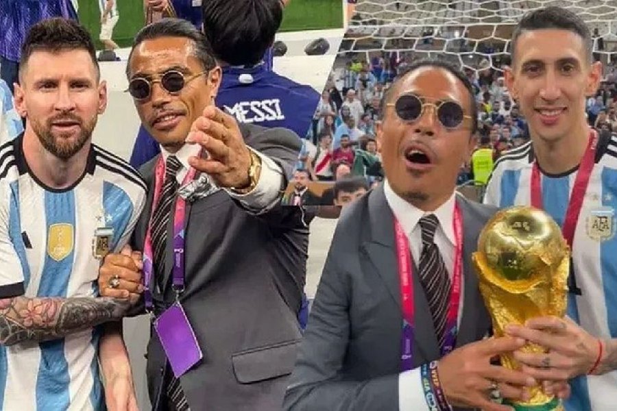 Nusret Gokçe, apodado Salt Bae, es dueño de una cadena de restaurantes de lujo. Tras la victoria de Argentina contra Francia, se hizo algunas fotos sobre el césped con Lionel Messi, Angel Di Maria y otros campeones del mundo.