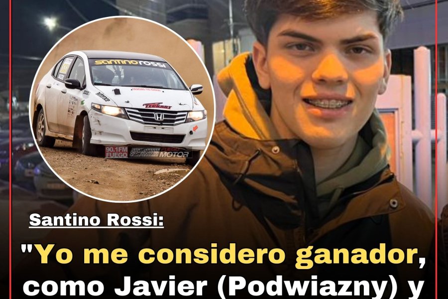 Navegado por Martín Baucero, tuvo un ritmo espectacular, habló con FUEGO MOTOR y dijo, “soy el piloto que soy por la hermandad, porque desde que tengo noción de memoria he ido a la carrera. Mi papá la corría, mi mamá me llevaba y he ido a las 4:00 de la mañama a quedarme en la Arcillosa a verlo todos los años. No estaba dentro de los planes correr la Hermandad, sí tenía muchas ganas, pero no estaba dentro de las posibilidades. Entre una cosa y otra se terminó dando que corra yo, se lo voy a agradecer toda la vida a mi tío (Emmanuel Rossi), tiene un corazón enorme, me dio su auto, todo estaba encaminado para que se corra él. Se hizo de la misma manera que si hubiera corrido de él o yo, las cosas se prepararon igual”.El joven piloto riograndense continuó diciendo, “confiaba en el auto un poco porque sabía que tampoco me iban a dejar correr con algo que no iba a tener posibilidad. Se trabajó para que sea competitivo, tengo al Chupa Pereira atrás que hizo todo en el auto para que el auto esté 10 puntos hasta lo último, hasta la última madrugada antes clasificatorio, sin dejar ningún detalle que también hizo que el auto llegue a Porvenir intacto”.“Con Matute (Baucero) hicimos dos pasadas a todo el camino, una anotando y otra de repaso como hacemos siempre, -añadió Rossi-, entonces sabía que por ese lado íbamos a andar bien. No éramos dos inexpertos corriendo la carrera, venimos con mucho ritmo y yo soy de acá, aunque ella haya sido mi primera vez, el año pasado corrí de navegante y la conozco mucho a la carrera. Creo que hoy en día más con el sistema de notas que usamos nosotros, si sabés hacer bien la hoja y confías en la hoja, como nos pasó en el clasificatorio, que salimos y no se veía nada. Venimos hace cuatro años trabajando de esta manera”. Santino Rossi continuó hablando de lo que fue el desarrollo de la primera etapa, “venía a disfrutar la carrera, pero me inscribí para ganar, es la realidad, a pesar que había pilotos rapidísimos, Facundo Carletti que iba por la Challenge, Pato Sánchez, Matías Finoquio, Mao Moreira y así puedo seguir con los treinta autos de diferentes marcas y todos muy parejos.Teníamos un plan de carrera por sectores, en sí era llegar vivo a Porvenir, después el segundo día ver si hacía falta salir a apretar, depende de cómo habíamos quedado en la carrera”.Pensé que el auto me iba a responder mejor en la parte argentina, fue lo que menos me gustó de toda la carrera, no iba bien el auto en lo que es la parte argentina, pero sabía que el resto de la carrera iba a funcionar bien. De Cameron hasta Porvenir, sabemos que podíamos apretar y acelerar de nuevo. Estaba en el plan de carrera andar lo más rápido posible, pero en ningún momento fuimos a un cien por ciento de ritmo. Nunca exigimos un frenaje, nunca exigimos un cambio, una curva, en ningún momento. Un ritmo muy conservador y demasiado de Hermandad”.En cuanto a la incertidumbre que hay sobre la clasificación de la competencia, el joven piloto de Río Grande fue contundente, “yo me considero ganador, calculo que Javier (Podwiazny) y Luciano (Preto) también, creo que no hay otra respuesta para esta carrera. Por mi parte estoy esperando los resultados, los tiempos oficiales y la verdad que la copa no me importa. Lo primordial acá es que Martín (Thompson) esté bien. Finalmente, Santino Rossi opinó también como le gustaría que sea el futuro de la competencia, “hay que mantener la esencia, Río Grande – Porvenir, unir los pueblos, que pasen estas diferencias e ir haciendo cambios de a poco, porque hacen falta, pero no muchos, los mínimos para que la carrera pueda seguir de en pie e ir modificando poco a poco esta situación”.