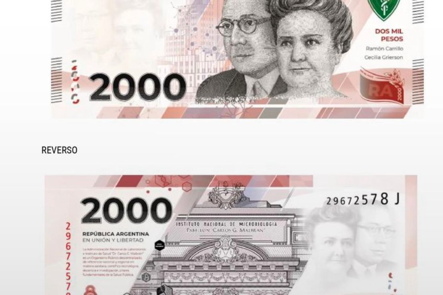 El Banco Central de la República Argentina aprobó la emisión de un billete de $2000. El mismo saldrá en el segundo semestre. El billete conmemora el desarrollo de la ciencia y de la medicina en la Argentina y tendrá como protagonistas al Instituto Malbrán, y a la Dra. Cecilia Grierson y al Dr. Ramón Carrillo.