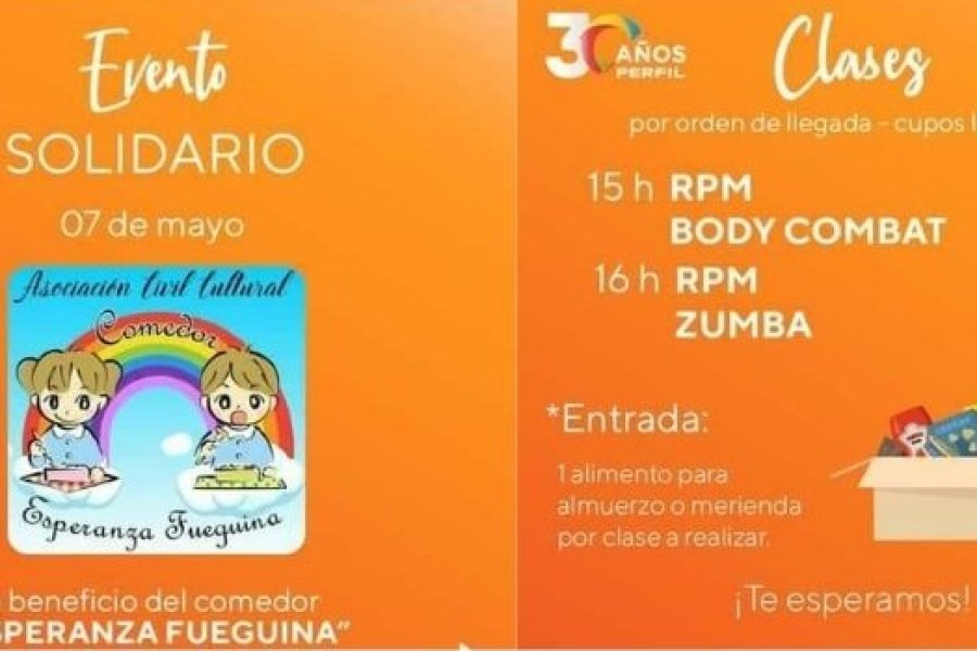 Érica Bustos, referente del comedor Esperanza Fueguina, habló con FM FUEGO: “Hace unos días hablamos con Valeria, una de las chicas de Perfil, quien nos comentó que cumplían 30 años, por lo que nos invitó a un evento solidario para poder juntar alimentos no perecederos para nuestro comedor de la Margen Sur, en el barrio Argentino, donde asistimos a 52 familias. El evento que se hará es para juntar alimentos no perecederos. Es el día 7 de mayo a las 15:00 horas en el gimnasio Perfil, con actividades RPM, Combate y a partir de las 16:00 horas comienza la clase de zumbas. Los cupos son limitados por el espacio, es abierto a todo el público”.