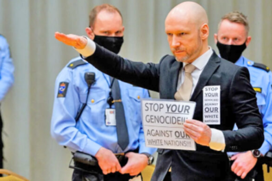Breivik, con la cabeza rapada y barba, entró en la sala con un mensaje escrito y un traje oscuro. En el texto se podía leer “¡Paren su genocidio contra nuestras naciones blancas!”. Miró rápidamente a los periodistas e hizo el saludo nazi a la llegada de los tres jueces.