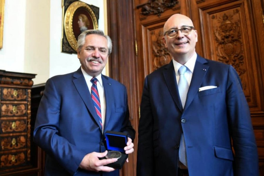 El presidente Alberto Fernández recibió este jueves una medalla honorífica entregada por la universidad La Sorbona de París, en el inicio de su visita oficial a Francia, última escala de la gira que antes recaló en España y Alemania y concluirá este viernes con una reunión con el reelecto mandatario francés, Emmanuel Macron.