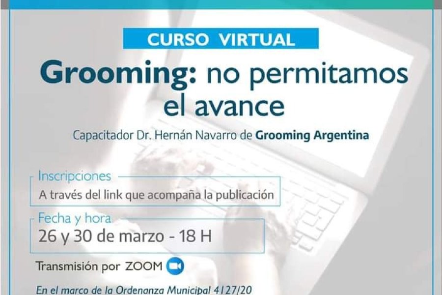En el marco de la Ordenanza Nº 4127/20, que propone la implementación de campañas de concientización, prevención e información sobre ciberdelitos, el Municipio ofrece una capacitación sobre Grooming abierta al público, con la participación de un disertante nacional.