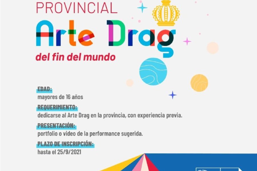La Secretaría de Cultura de Tierra del Fuego, AIAS llevará adelante el primer concurso provincial de Arte Drag Fin del Mundo donde se seleccionarán cinco performances para asistir a talleres de intercambio y formación. Está destinado para personas mayores de 16 años. Las inscripciones estarán abiertas hasta el 25 de septiembre.