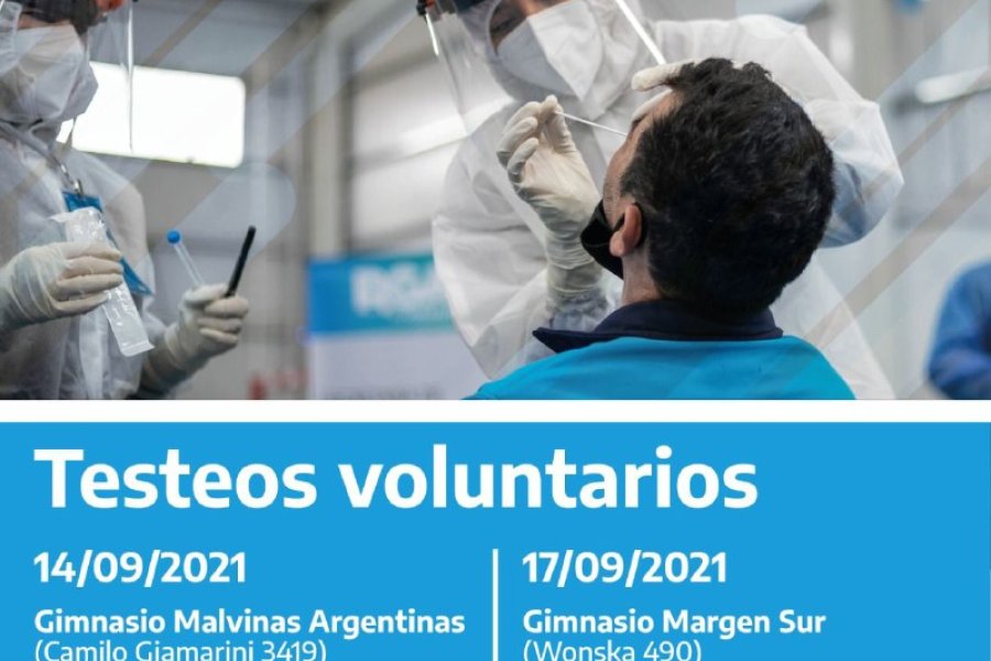 De esta manera, este martes 14 de septiembre, los testeos tendrán lugar en el gimnasio “Malvinas Argentinas” (Chacra XIII), ubicado en Camilo Giamarini 3419. En tanto que el día viernes 17 de septiembre, el “Operativo Cuidar” se llevará a cabo en el gimnasio de Margen Sur, ubicado en Wonska 490.