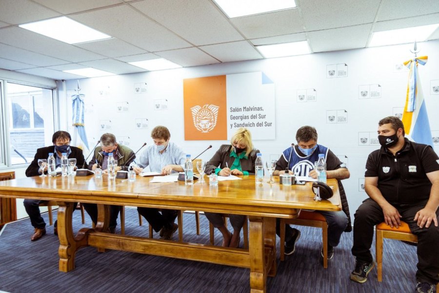 El Gobernador de la Provincia de Tierra del Fuego AIAS, Gustavo Melella, encabezó el acto de homologación de acuerdos salariales con los trabajadores y trabajadoras del Estado Provincial de los escalafones seco y húmedo. Participaron Carlos Córdoba en representación de ATE, José Luis Ríos por UPCN y Claudia Etchepare por ATSA. Estuvieron presentes también los paritarios Felipe Concha, Vicente Garrigan y Roberto Oyarzo (ATE); Emilio Sala y Gustavo Rojo (UPCN); Gisela Scipioni (ATSA) y paritarios y funcionarios del Gobierno Provincial.