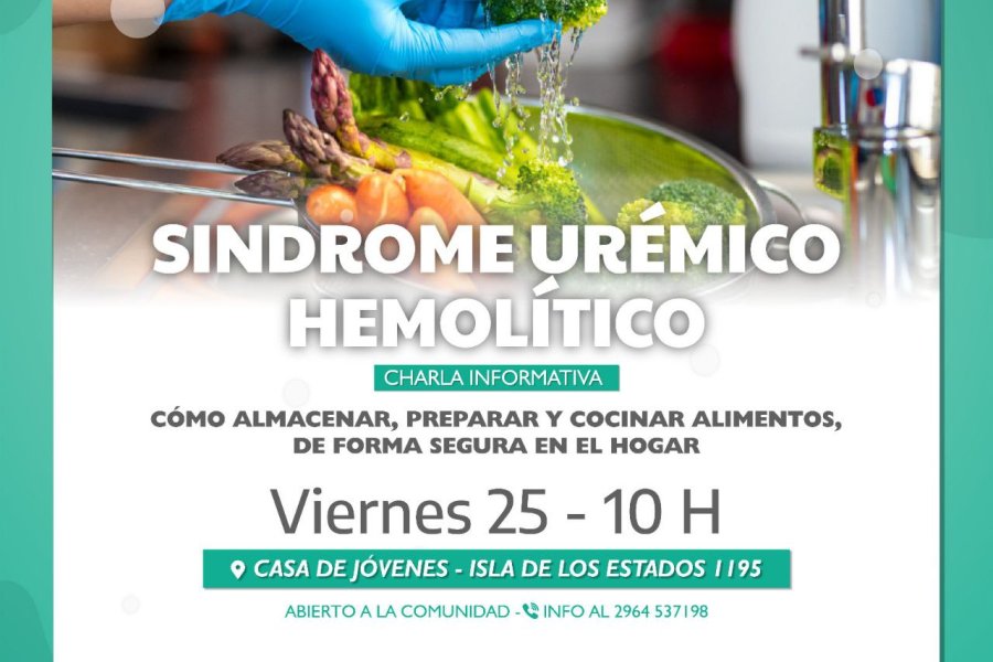 Este viernes 25 de agosto, en el marco del Día Nacional de Lucha contra el Síndrome Urémico Hemolítico (SUH), profesionales del Municipio de Río Grande brindarán una charla en Casa de Jóvenes para generar conciencia y promover acciones en pos de prevenir esta enfermedad.