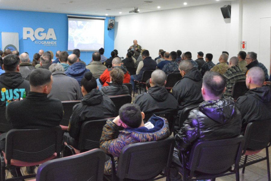 Participaron de la charla el director General de Cooperación y Asuntos Estratégicos, Ariel Rodríguez; el director de Asuntos Relativos a Malvinas, Atlántico Sur y Antártida, Hugo Martínez; el VGM Roma Alancay en representación del Centro de Veteranos de Malvinas; quienes hicieron entrega al disertante de un ejemplar del libro “Ciudad de la Soberanía. Río Grande, Malvinas y la construcción de la Argentina Bicontinental” y del primer número de la revista “Estepa y Mar” la cual está abocada a la Causa Malvinas.