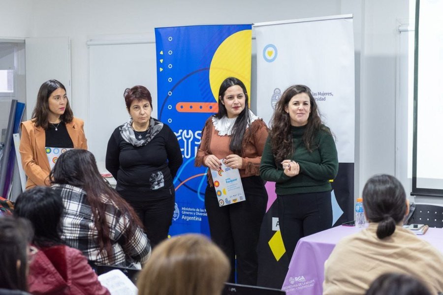 La actividad estuvo a cargo de Rocio Lafuente Duarte, directora nacional de Programas Transversales de Igualdad; Sofía Veliz, directora nacional de Articulación Integral de Políticas de Cuidados; Sandra Armengol, integrante del equipo del Programa Equiparar y Eugenia Capraro del Programa Igualar, a cargo del Ministerio de las Mujeres, Géneros y Diversidad.
