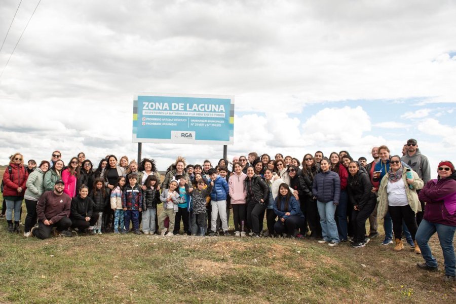 En el marco de la presentación del proyecto de ordenanza para declarar como Reserva Natural Urbana la Laguna Sur, la concejala Alejandra Arce, la comunidad educativa de la escuela del Cono Sur y el Municipio de Río Grande llevaron adelante la instalación del cartel que indica la Zona de Lagunas y la prohibición de desechar residuos.