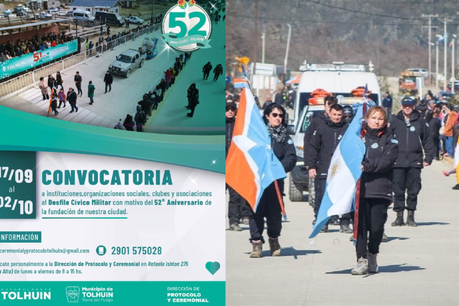 Con motivo de conmemorar el 52° aniversario de la fundación de Tolhuin, el Municipio local convoca a instituciones, clubes, asociaciones y organizaciones a participar en el tradicional desfile cívico-militar que se llevará a cabo el 9 de octubre, en una celebración que representa una oportunidad para destacar el crecimiento y la historia de la ciudad.