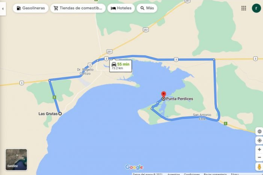 Cómo llegar tomando de referencia a “ Las Grutas” a “ Punta Perdices”.