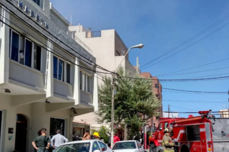 Personal del Cuerpo de Bomberos Voluntarios de la ciudad portuaria recibieron el llamado de un principio de incendio en el Hotel Gran Madryn ubicado sobre la calle Lugones.