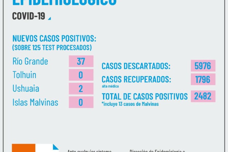 En Tolhuin se registra 1 caso el cual ya tiene el alta médico.