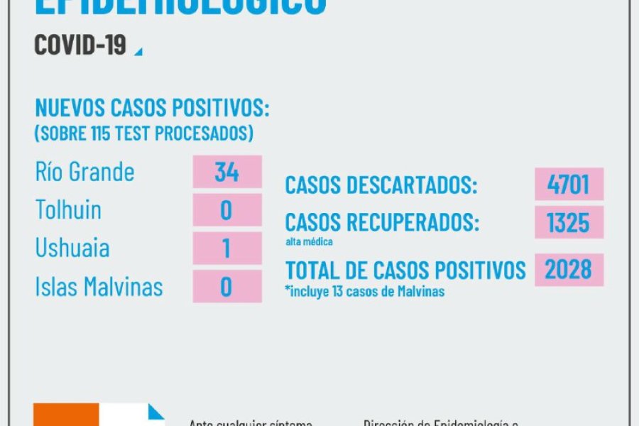 La Dirección de Epidemiología e Información de la Salud del Ministerio de Salud del Gobierno de la Provincia de Tierra del Fuego, Antártida e Islas del Atlántico Sur informa el reporte diario provincial en relación a la pandemia por coronavirus Covid-19: