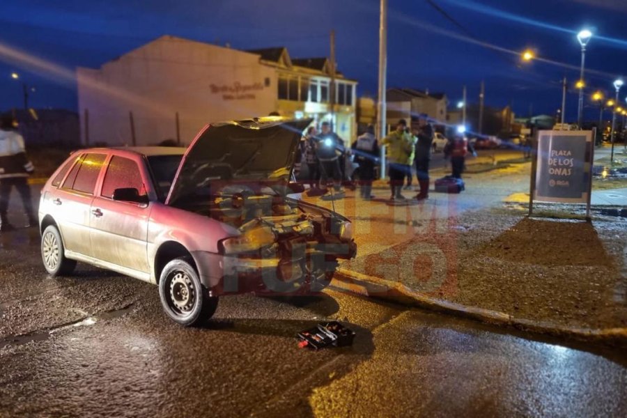 Esta última fue impactada en el sector de la puerta del conductor, terminando sobre la vereda muy próxima a una columna apostada en la plaza de la intersección.
