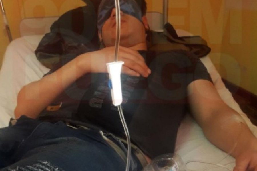 Cuando llegó al hospital, expresó que "lo pusieron en observación, le hicieron la tomografía y así estuvo hasta las 11 de la mañana cuando le dieron el alta. Tiene la cara completamente golpeada, la nariz rota y el golpe que tiene en la cabeza que fue lo que lo desmayó".