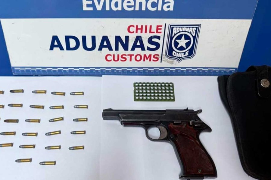 El hallazgo se produjo pasadas las 14:30 horas, cuando funcionarios de Aduanas realizaban labores de fiscalización en un automóvil de matrícula argentina. Durante la inspección, encontraron debajo del asiento una pistola marca Star B. Echeverría Eibar España S.A., calibre 22 LR, junto a 22 municiones sin percutar marca FM.