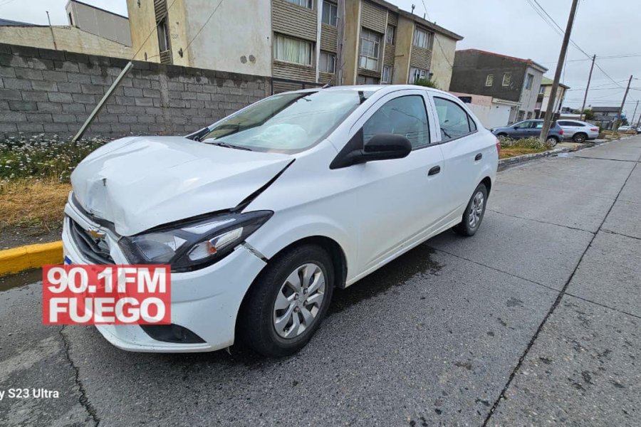 Un vehículo de alquiler, marca Chevrolet modelo Joy que circulaba por calle Moyano, al llegar a la intersección con Islas Malvinas, colisionó a un vehículo marca Chevrolet modelo Corsa en la parte trasera derecha, arrancando una de las cubiertas casi en su totalidad del eje trasero.