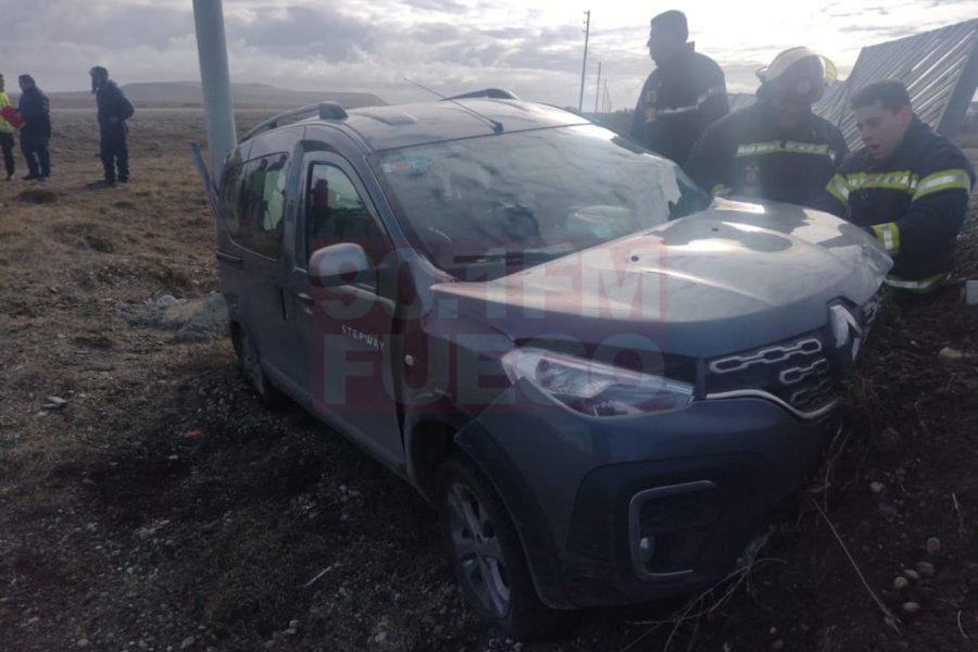 Tras el choque el utilitario cayó a la banquina terminando su marcha sobre un pronunciado montículo de tierra. El vehículo revistió importantes daños.