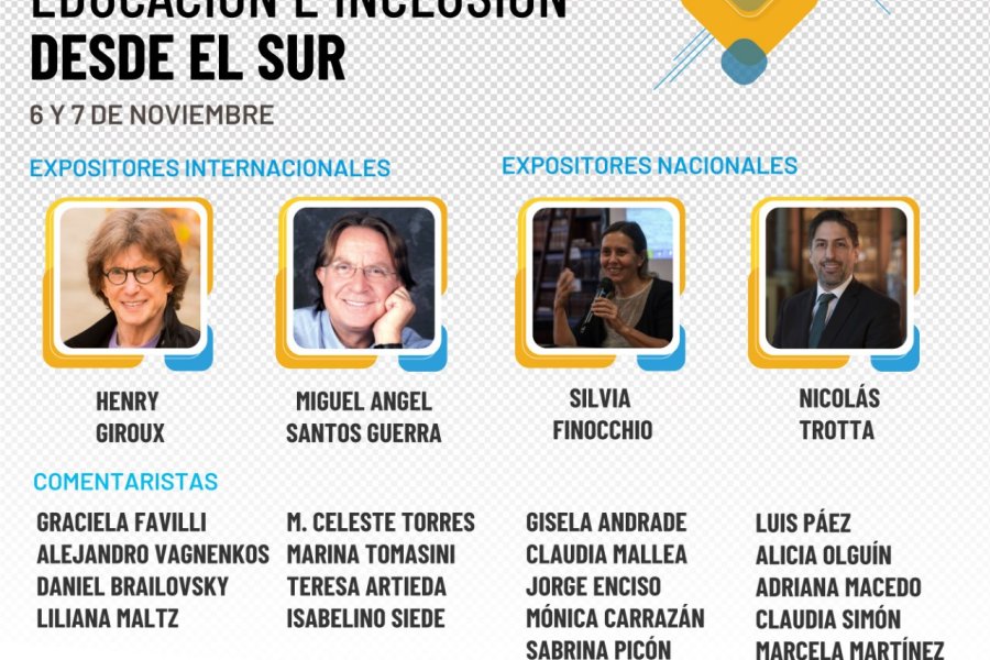 En tanto, el día sábado 7 de noviembre comenzará la jornada a las 9:30 Hs con la conferencia brindada por el Ministro de Educación de la Nación, Nicolas Trotta y a partir de las 11 horas iniciará una parte de las mesas con los diferentes comentaristas, ponencias y expositores, para luego, a las 14 horas contar con la presencia de Silvia Finocchio, Doctora en Ciencias Sociales por FLACSO, quien brindará la Conferencia denominada “Pensar juntos: educación integral y tiempo escolar”.