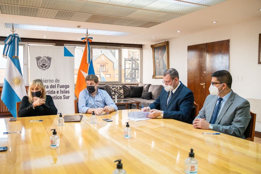 El Gobernador Gustavo Melella, acompañado por la Ministra de Gobierno, Justicia y Derechos Humanos, Adriana Chapperón y el Ministro de Finanzas Públicas, Federico Zapata García, refrendó el decreto que establece la recomposición salarial para el sector de seguridad, con un incremento del 35,7% que se otorgará en tramos. Estuvo presente el jefe de la Policía de la Provincia, el comisario General Jacinto Rolón.