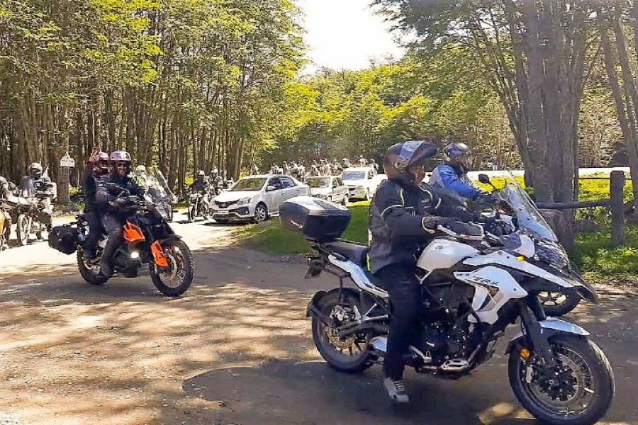 El encuentro comenzó el sábado, con una caravana por el circuito céntrico, alrededor del mediodía, en simultáneo partieron los motoviajeros que se encontraban en Ushuaia hacia Haruwen, y los que aguardaban en Río Grande, hacia el mismo punto. Allí compartieron al aire libre compartieron un almuerzo, sorteos y música, gracias al buen clima que se extendió durante toda la tarde.