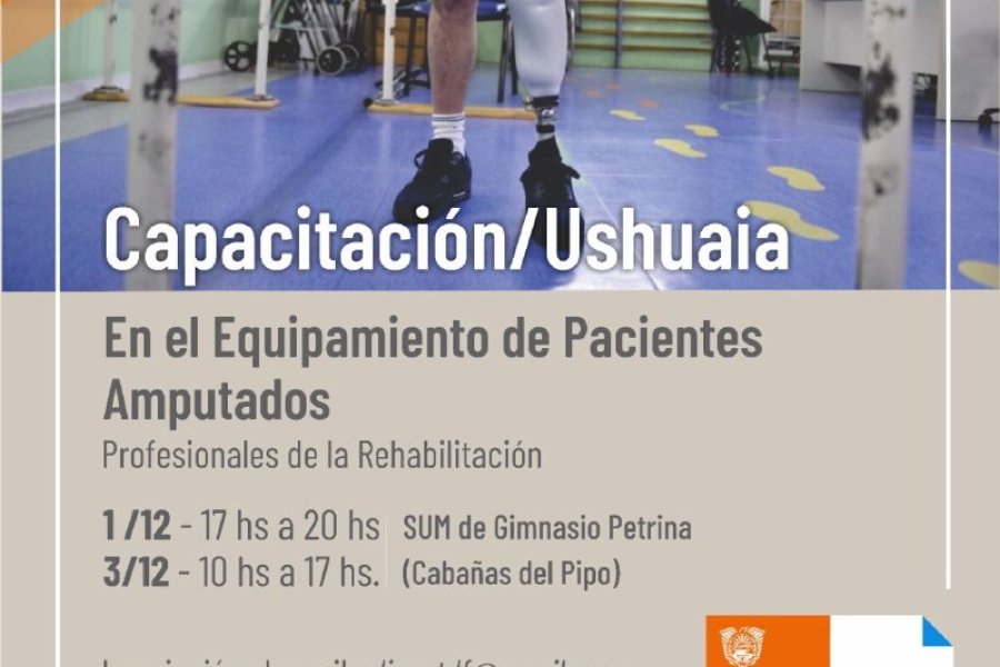 La Secretaría de Atención a Personas con Discapacidad anunció la realización –entre el 1 y el 3 de diciembre próximo- una Capacitación en Equipamiento Ortopédico para Amputados, en el SUM del gimnasio “Carlos Petrina” (Cabañas del Pipo), de Ushuaia.
