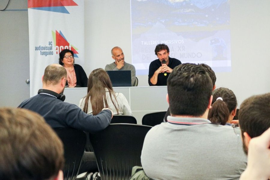 El secretario de Industria y Promoción Económica, Juan Ignacio García estuvo presente en el lanzamiento de la Residencia XR del Fin del Mundo sobre tecnologías inmersivas, que se realizó este lunes, en el auditorio de OSDE de Ushuaia. Estuvieron presentes autoridades de la Asociación Civil del Audiovisual Fueguino (ACAF) y de Virtuality, donde las y los becados iniciaron su formación.