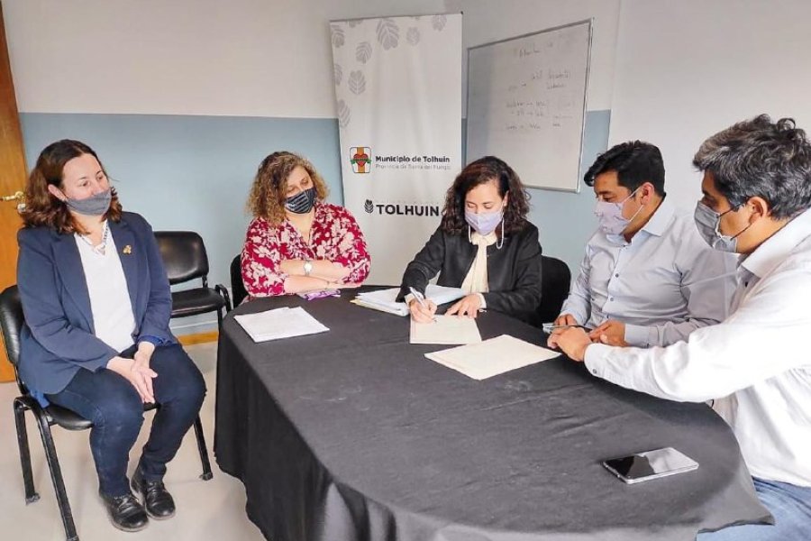 De la firma de traspaso participaron por el Municipio de Tolhuin, el Intendente, Daniel Harrington y la Subsecretaria de Gestión y Desarrollo Urbano, Valentina Vissani.