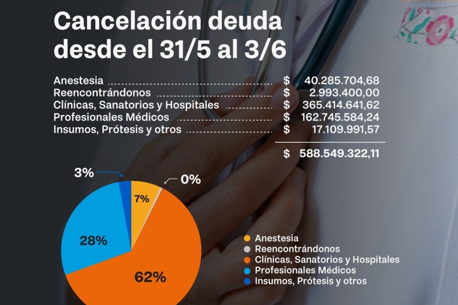 Gracias a esta fuerte capitalización, al momento la OSEF ha transferido más de 40 millones de pesos para el pago de anestesistas; cerca de 3 millones a la Asociación Reencontrándonos; más de 365 millones de pesos a Clínicas, Sanatorios y Hospitales; al igual que se transfirieron cerca de 163 millones de pesos a profesionales médicos por sus prestaciones y se destinaron más de 17 millones para el pago de insumos, prótesis y otros.