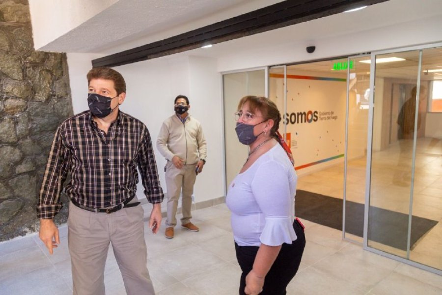 El Gobernador Gustavo Melella, acompañado por la Ministra de Obras y Servicios Públicos, Gabriela Castillo; recorrió la finalización de los trabajos ejecutados por la cartera ministerial en el edificio estatal.