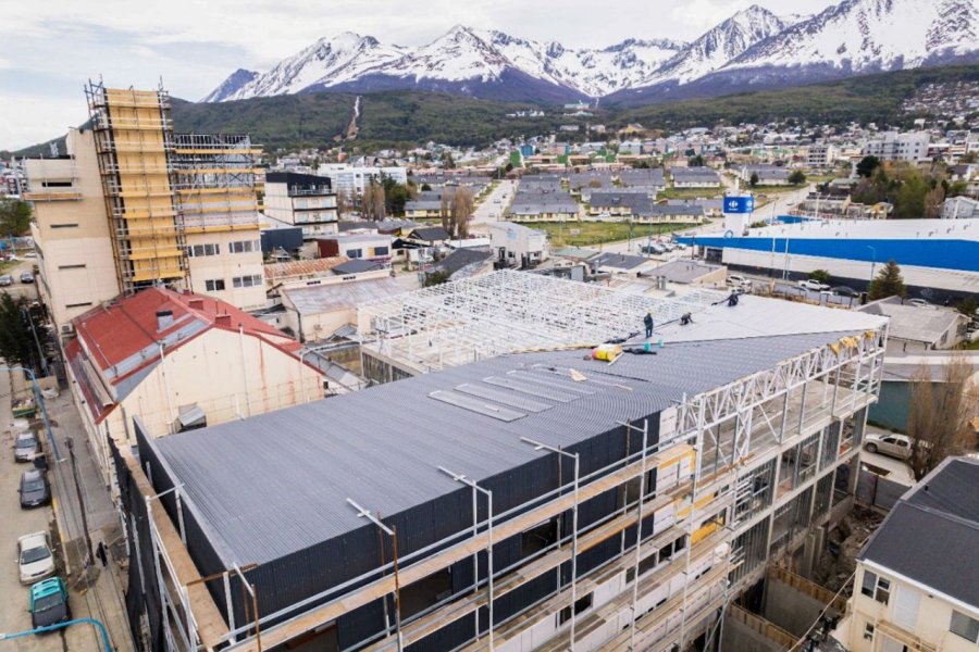 En esta oportunidad, la empresa a cargo de la obra se encuentra avanzando en el techado del último piso donde se monta la estructura del nuevo edificio.