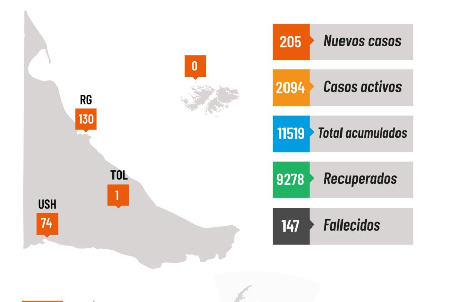 Ushuaia: 207 casos tienen nexo epidemiológico confirmado y 2245 casos con transmisión comunitaria.