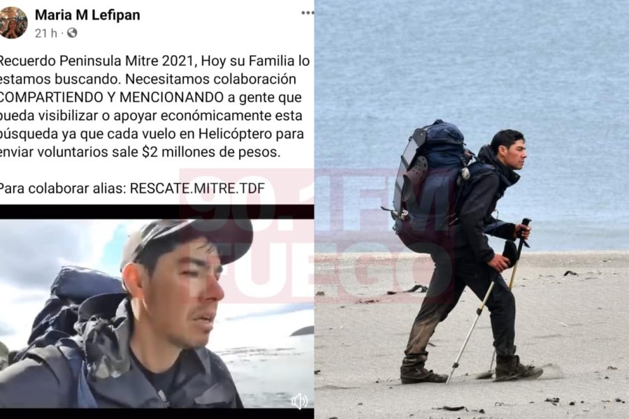 “Recuerdo Peninsula Mitre 2021, Hoy su Familia lo estamos buscando. Necesitamos colaboración COMPARTIENDO Y MENCIONANDO a gente que pueda visibilizar o apoyar económicamente esta búsqueda ya que cada vuelo en Helicóptero para enviar voluntarios sale $2 millones de pesos. Para colaborar alias: RESCATE.MITRE.TDF”, sostiene el posteo.