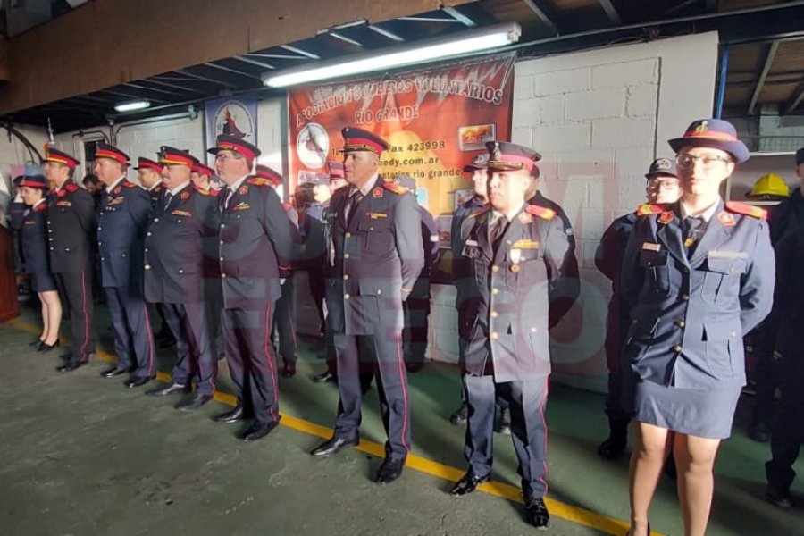 Esta mañana se realizó el acto oficial en homenaje a los Bomberos Voluntarios en el cuartel central del barrio Perón en Río Grande. En el mismo participaron funcionarios del Municipio y del Gobierno Provincial.