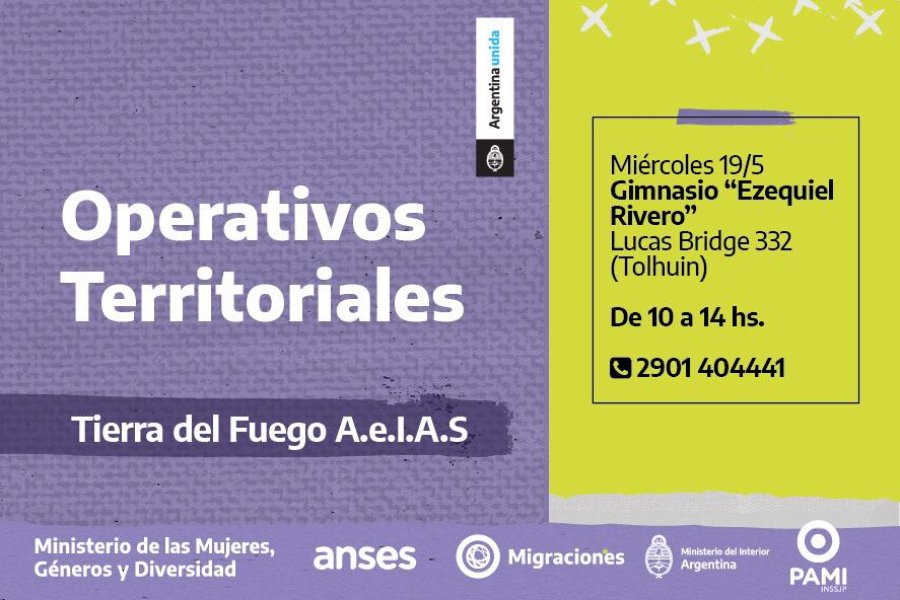 Con el objetivo de llegar a cada barrio y cada punto del país, se realizará un operativo territorial del Programa Acompañar en Tolhuin, con atención de PAMI, ANSES, Migraciones y el acompañamiento de la Secretaría de Gobierno y la Dirección de Desarrollo Social del Municipio.