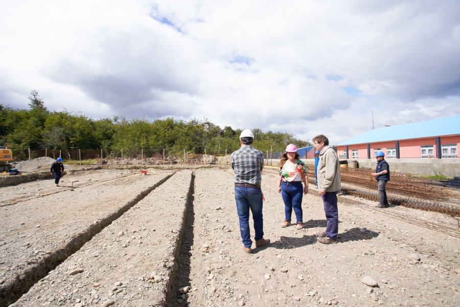 El gobernador Gustavo Melella visitó la obra del Centro de Desarrollo Infantil que se construye en Tolhuin. Actualmente, se está concretando el hormigón de la platea y fundaciones, para posteriormente continuar con los montajes de la estructura metálica del edificio.