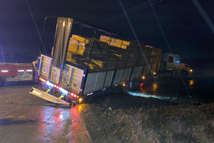 El conductor del semi remolque transportador de madera marca Volvo, Cristian Matías (43), manifestó que al egresar de la Ruta Provincial 23 y, debido a un giro muy cerrado para retornar a Ruta Nacional, el sector posterior del acoplado quedó encajado en una alcantarilla, obstaculizando media calzada de Ruta 3.