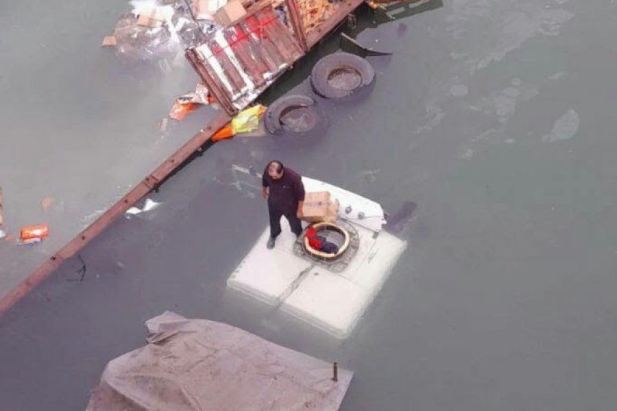 Fue desde el Tercer Puente, entre Neuquén y Cipoletti, y el hombre se subió a la cabina del camión a la espera de que lo rescaten.