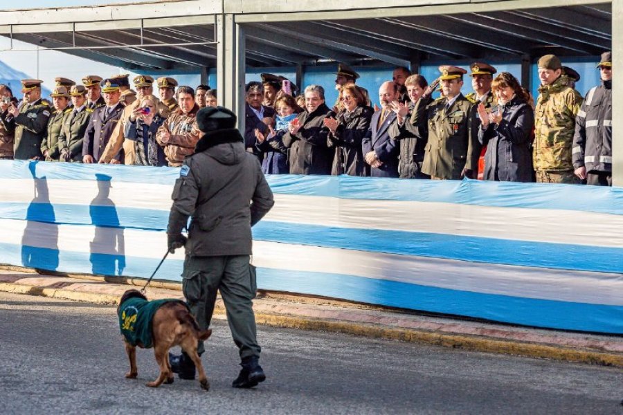 El Gobernador, Gustavo Melella, acompañado por el Comandante de la Región VII, comandante Mayor, Ricardo Sánchez, encabezaron el acto central por el 84° Aniversario de la Gendarmería Nacional que se desarrolló sobre calle Maipú.