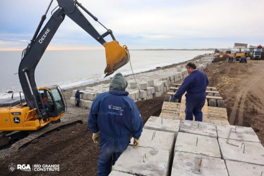 El Municipio de Río Grande, en el marco del intenso Plan de Obras previsto para este 2022, continúa con los trabajos de construcción de más de un kilómetro de Defensa Costera, que implica la continuación del muro ya existente desde la Avenida Belgrano, llegando con esta extensión hasta la altura de la Avenida Santa Fe.