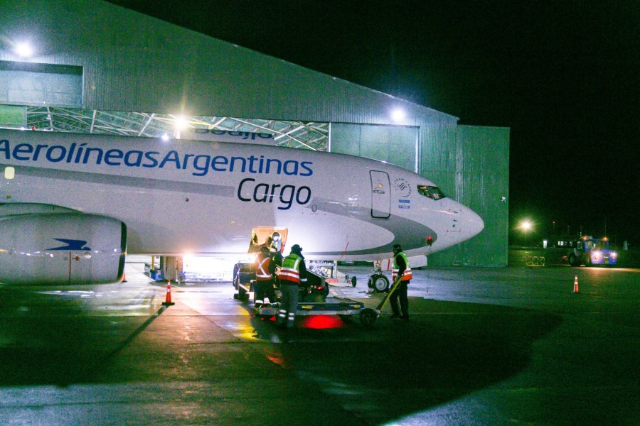 En horas de la mañana de este miércoles arribó a Río Grande el Boeing 737 de carga de Aerolíneas Argentinas para dar inicio a sus operaciones transportando insumos y productos del grupo Mirgor.