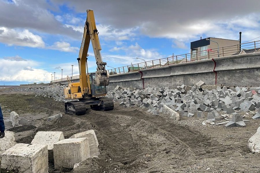 En dicho sector afectado, el Municipio de Río Grande se encuentra realizando tareas de saneamiento y mitigación con maquinaria y personal municipal. Las labores iniciales implican la construcción de una barrera para el rompimiento del oleaje, lo que permitirá avanzar en el calzamiento del muro y progresivamente llevarlo a su nivel original.
