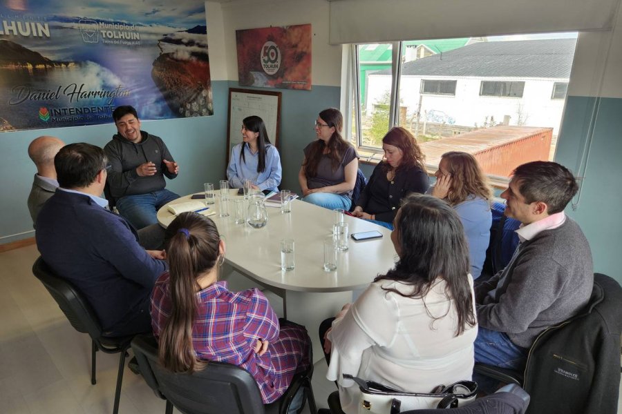 La concreción de la propuesta se dio en una reunión mantenida con el intendente Daniel Harrington; la secretaria de Gobierno Ana Paula Cejas; la directora de Políticas Educativas e Innovación Tecnológica Analuz Carol; junto al rector de la UNTDF, Mariano Hermida; el director del Instituto de Desarrollo Económico e Innovación (IDEI), Hernan Quesada; el director del Instituto de Cultura, Sociedad y Estado (ICSE), Mariano Melotto; la secretaria de Bienestar, Nidia Benitez; la secretaria de Extensión, Vinculación y Servicios, Natalia Graziano; la subsecretaria Ayelen Martinez; y la coordinadora Local del Trayecto Formativo, Catalina Villena.