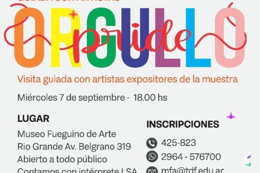 Gero Orellano, Coordinador Provincial del Museo Fueguino de Arte, habló con FM Fuego sobre la visita guiada que mañana se realizará desde las 18:00 horas: “Es una visita guiada abierta al público que tiene como objetivo, seguir difundiendo la muestra orgullo, que es la que tenemos en sala con una convocatoria abierta para todos los artistas de Tierra del Fuego, teniendo como objetivo la reivindicación de derechos. La visita guiada no sólo será acompañada por los artistas que forman parte de la muestra que está en sala sino también por una intérprete de lenguaje de señas, para que las personas sordas también se puedan acercar a esta visita, esperando que sea de interés de la comunidad”.