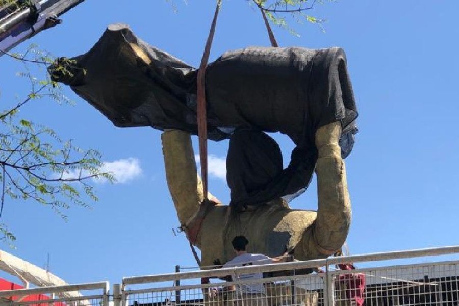 A la obra solo le faltan retoques para estar terminada y en horas de la mañana se colocaron el torso, la cabeza y los brazos en la estructura de bronce que ya está instalada en Núñez.