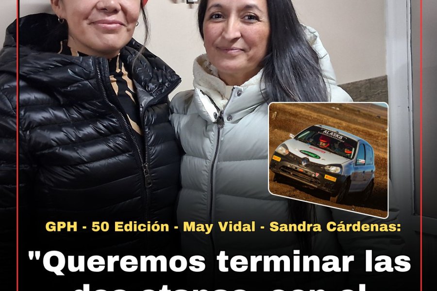 Ambas estuvieron en el programa FUEGO MOTOR. May Vidal detalló porque va a correr, "surgió la posibilidad, teníamos el auto, quería corree, un día le escribí a Sandra si me quería acompañar y enseguida me dijo que si, es una edición especial"."Fuimos a probar el auto, -continuó diciendo May-, porqur no lo conocíamos, es.muy rápido, diferente a todo lo que he manejado. Queremos completar las dos etapas con el mejor ritmo que podamos llevar".May Vidal agregó, "salimos a hacer nuestra caŕrera, quiero sentirme lo más segura posible. Queremos hacer la.mayor cantidad de hoja posible, me gustaría que haya barro, nieve, empareja más""Vuelvo a correr después de 6 años y creo que será la última", expresó en el final May Vidal.Por su parte, Sandra Cárdenas dijo, "mi idea es llevarla a May con un ritmo que sea parejo, vamos a ir con una hoja mía de hace 2 años, con la vieja denominación, haciéndole los ajustes necesarios".
